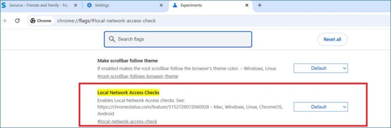 - In Chrome, type this in the address bar: chrome://flags/#local-network-access-check and press Enter.